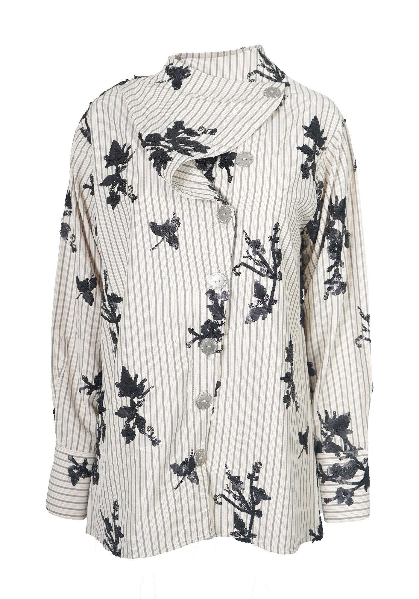 قميص مكون من قماش التنسل المشكوك مع حزام منفصل