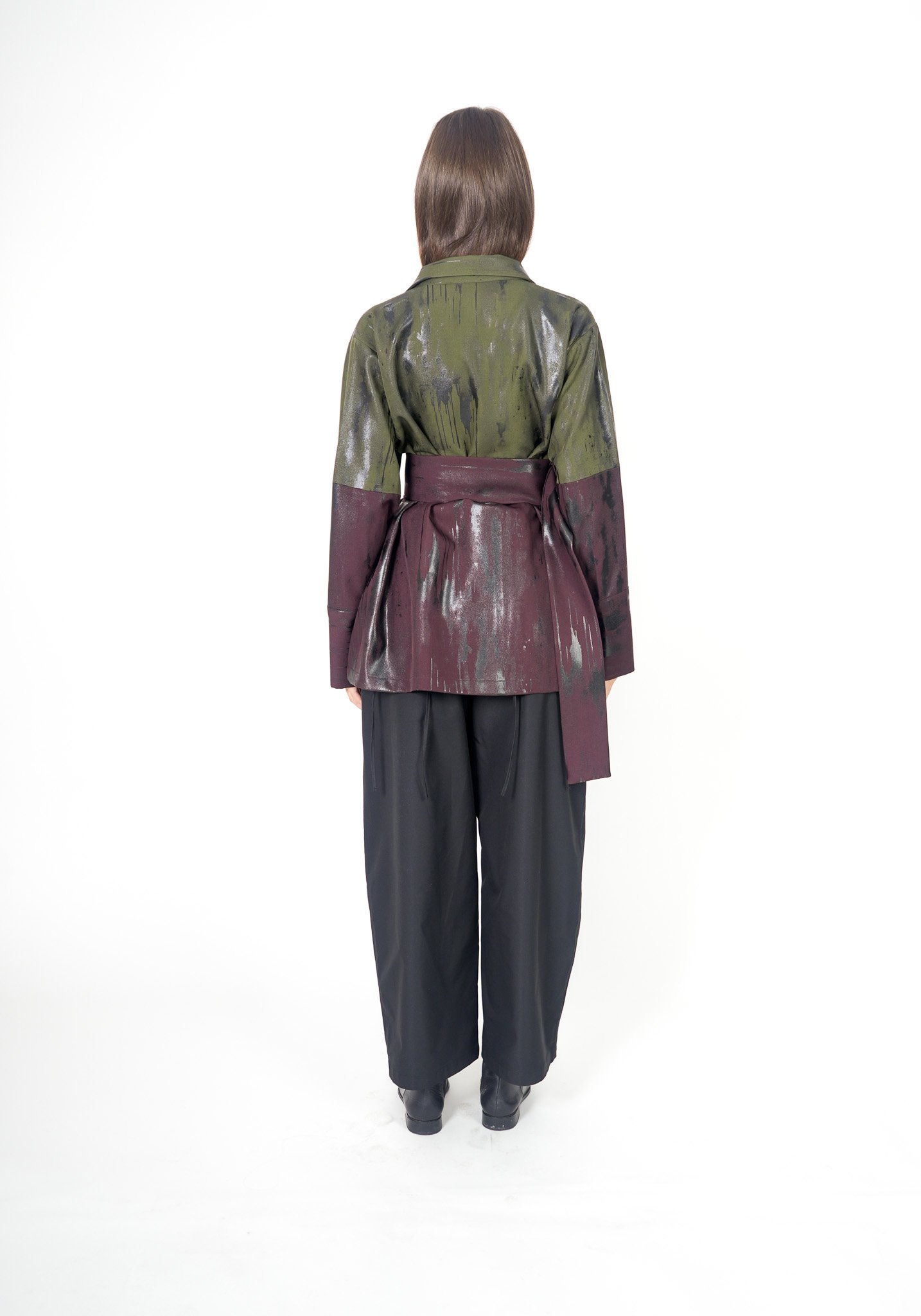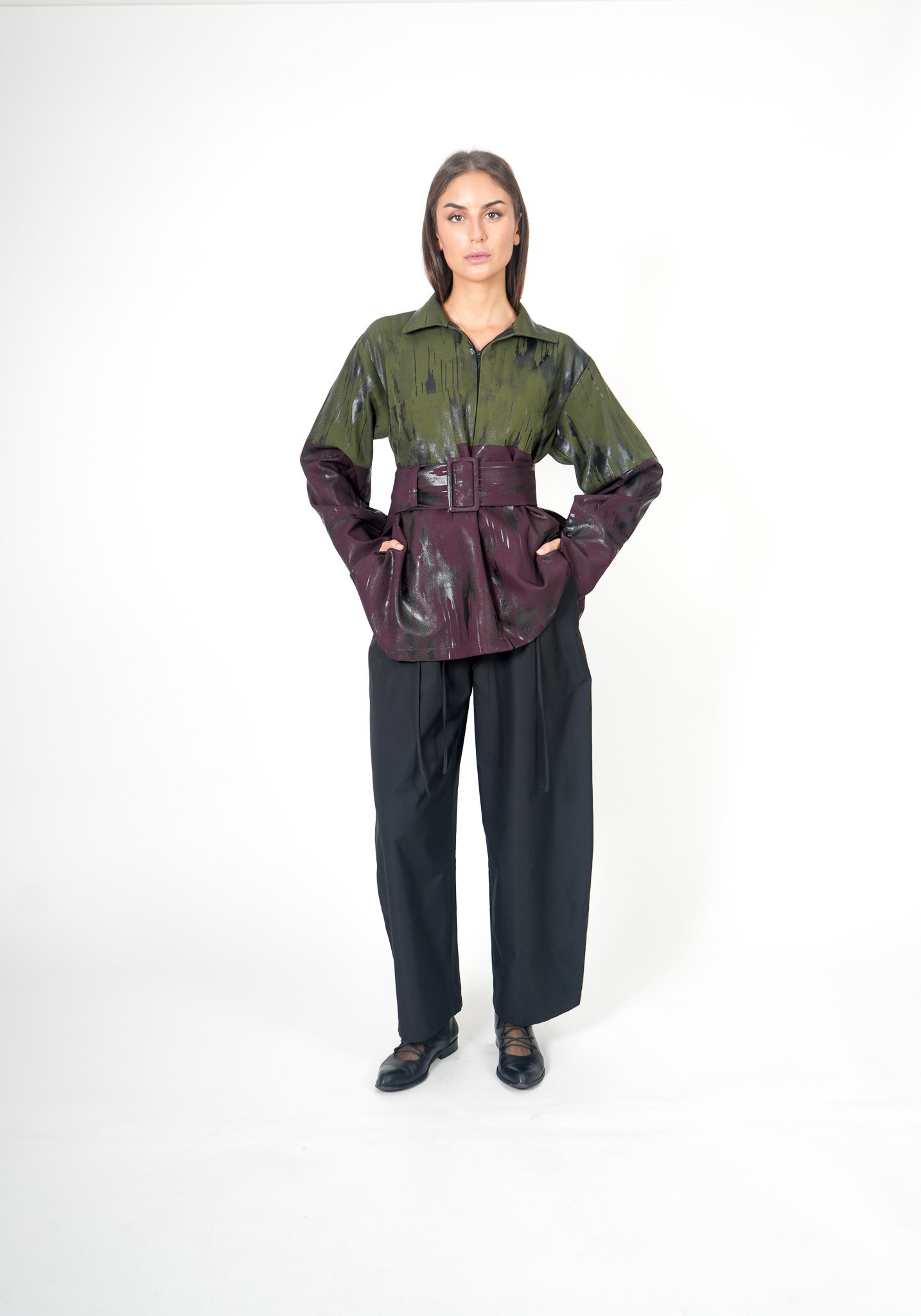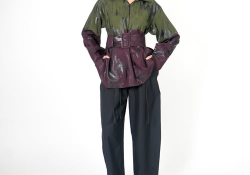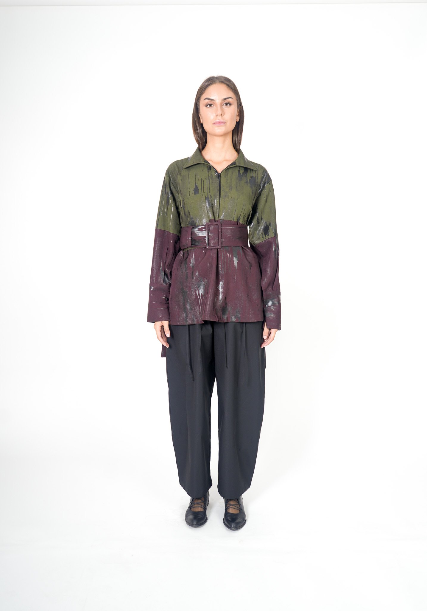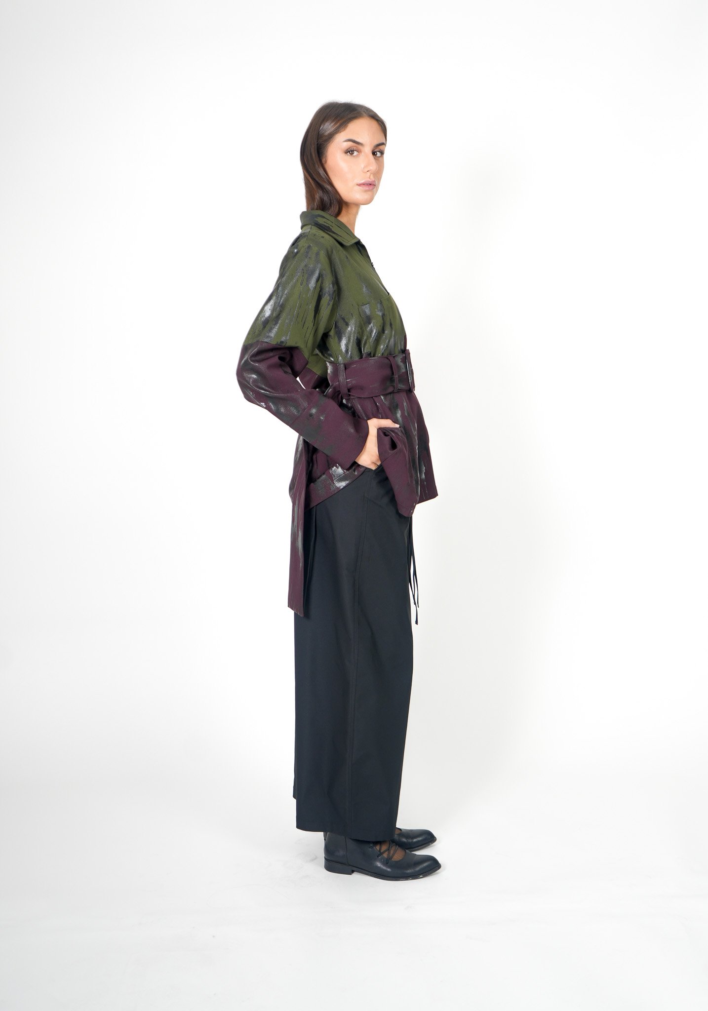 جاكيت من قماش الكريب بسحاب أمام مخفي و حزام منفصل