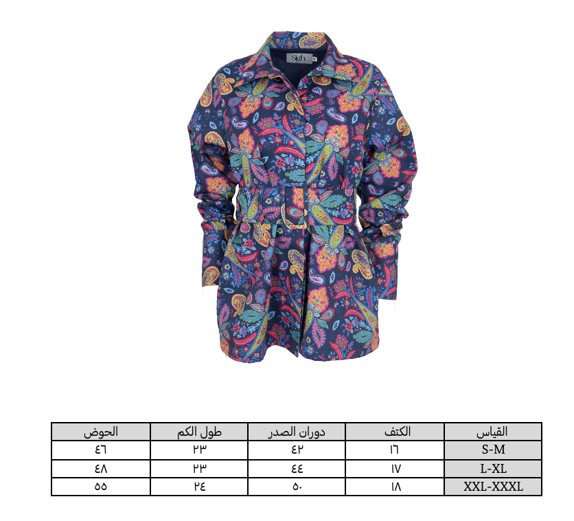 مفتوح من الأمام و يغلق بواسطة أزره مخفيه