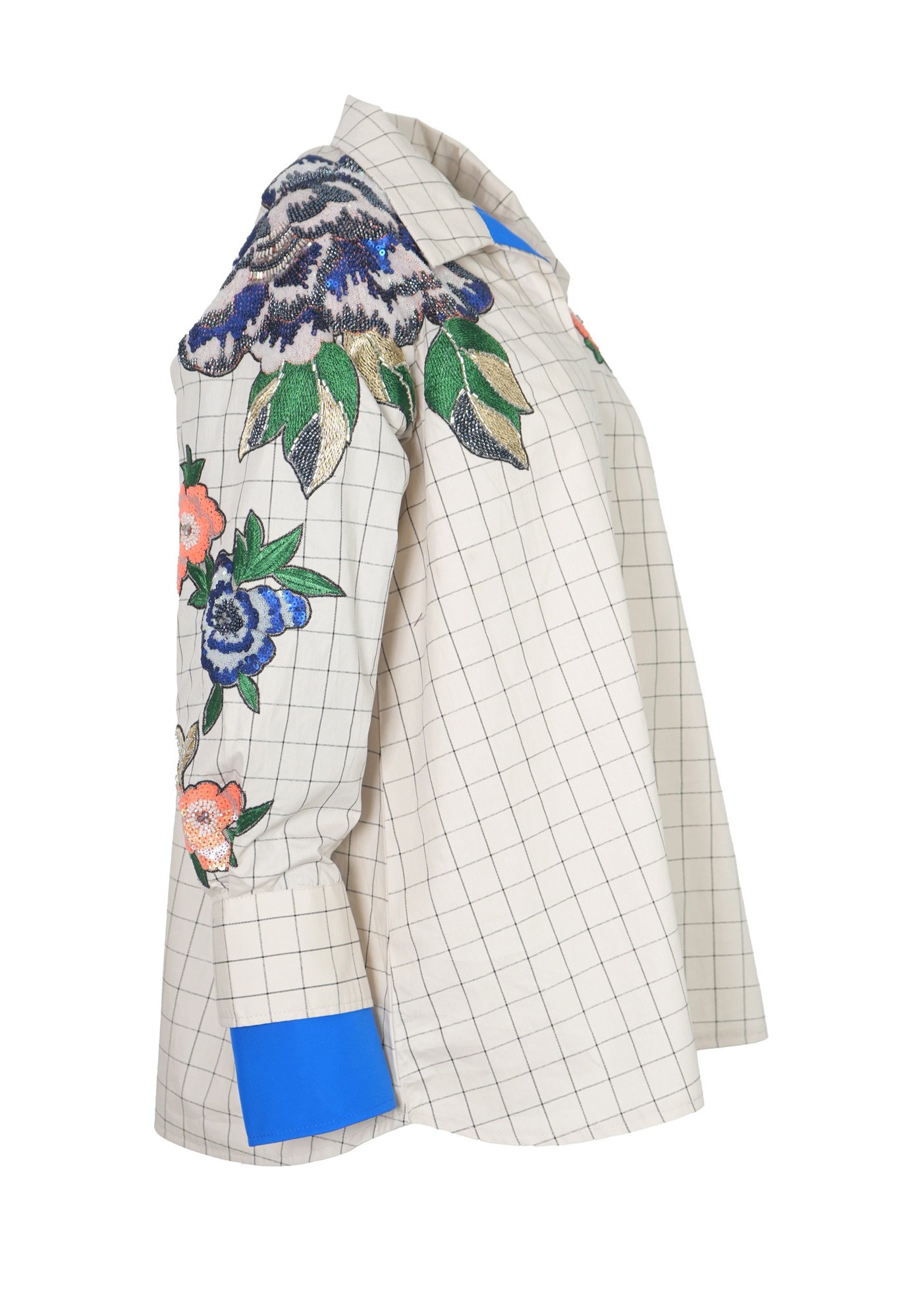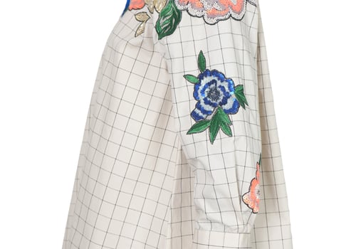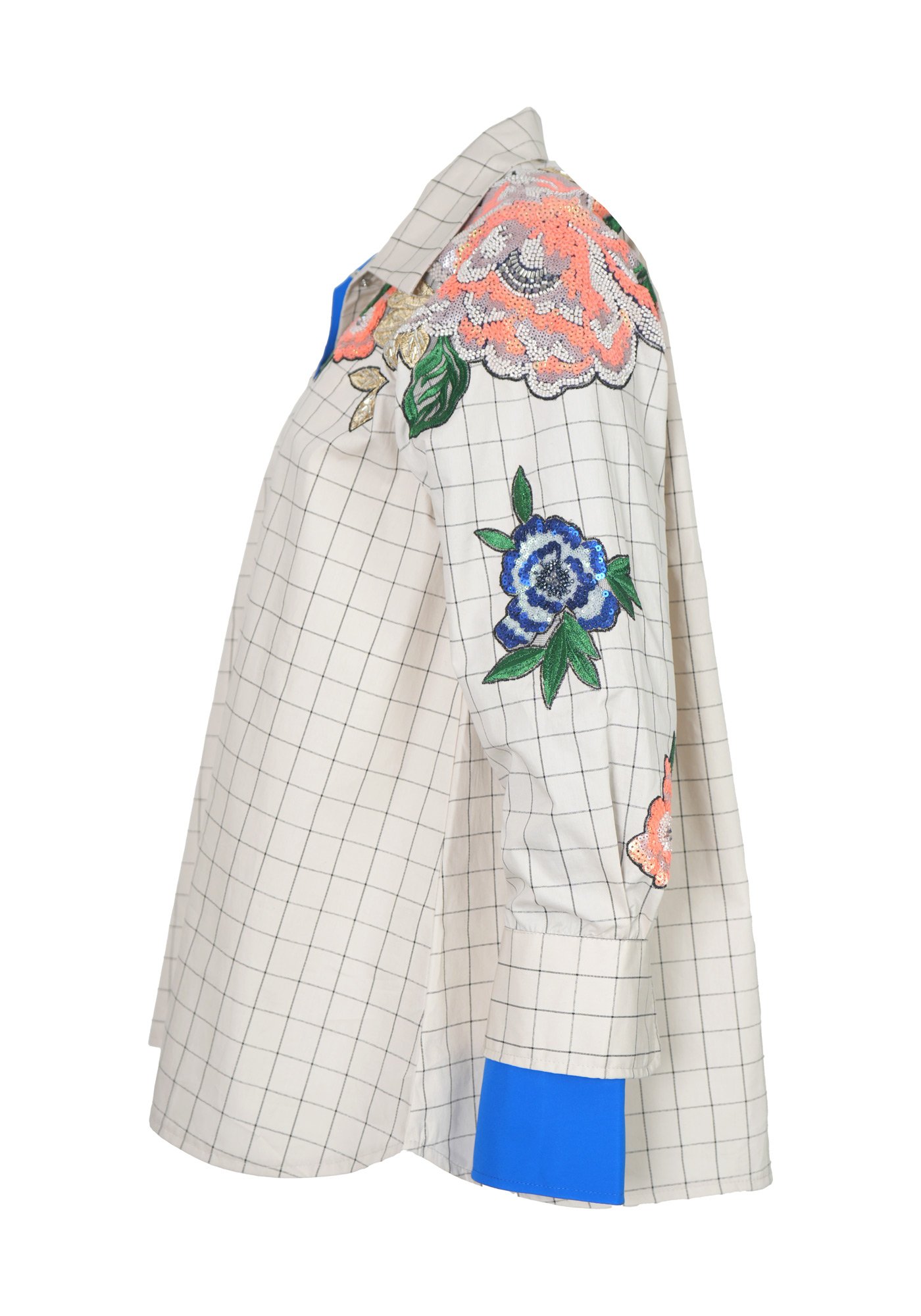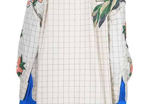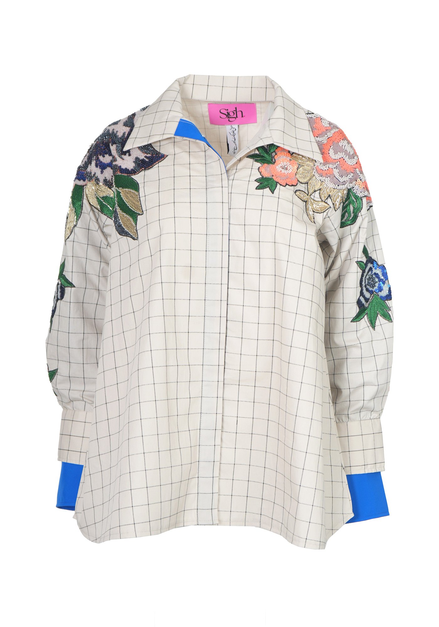 قميص مكون من القطن المشكوك بشك راقي مع حزام من فصل بلونين من القماش يمكن لبسه كحزام أو كرفته