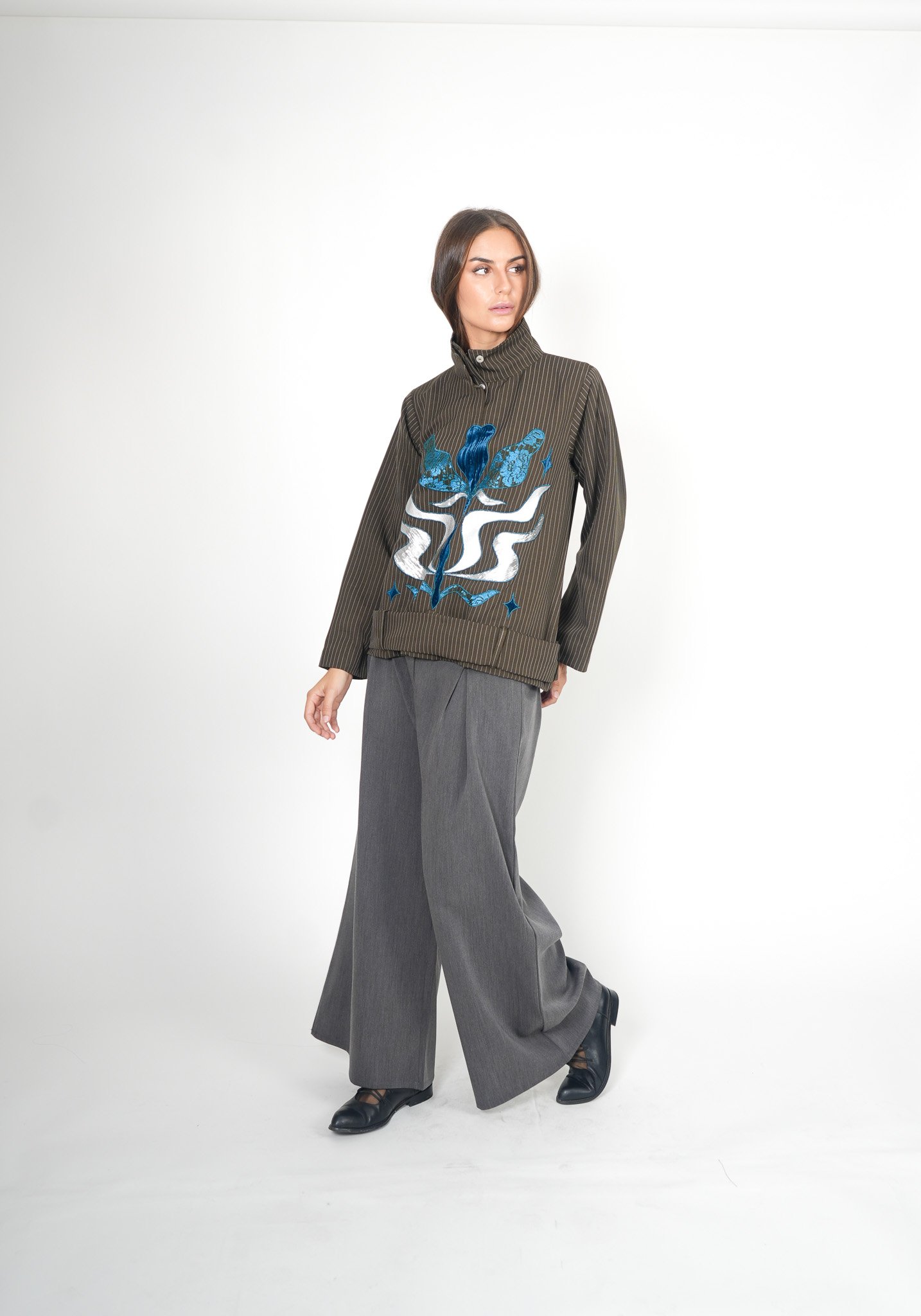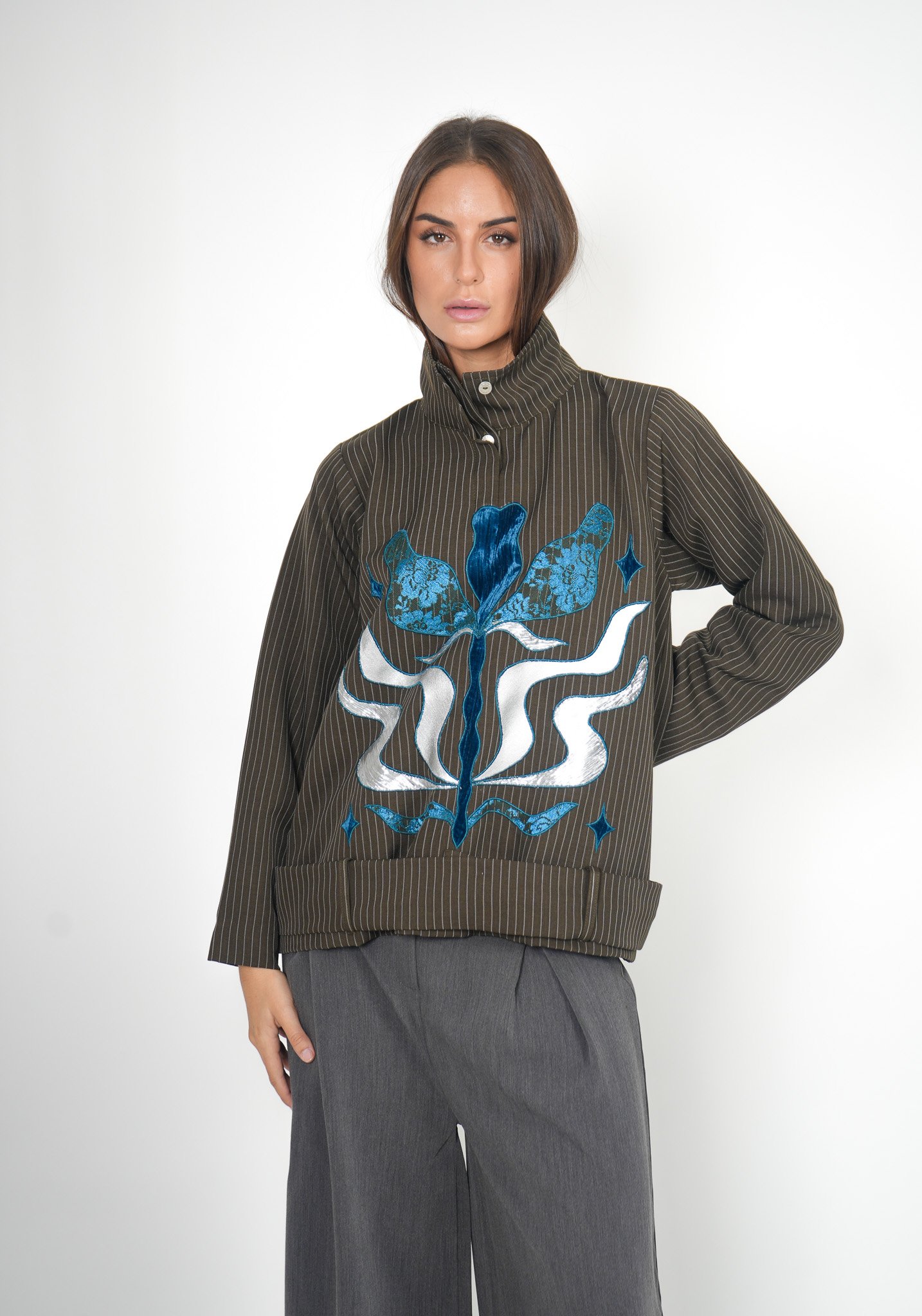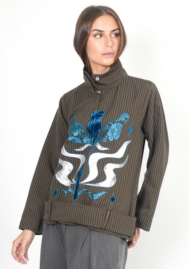 بلوزه بزرارين مخفيين من الأمام و تطريز راقي و مميز بتركيبات يدويه