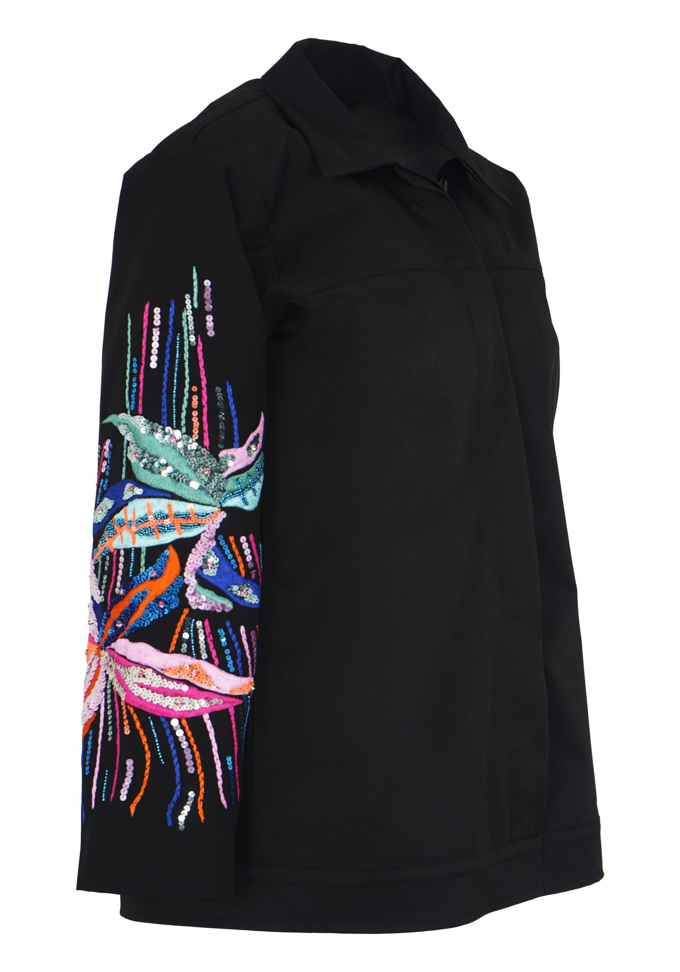 مفتوح من الأمام و يغلق بواسطة أزره مخفيه