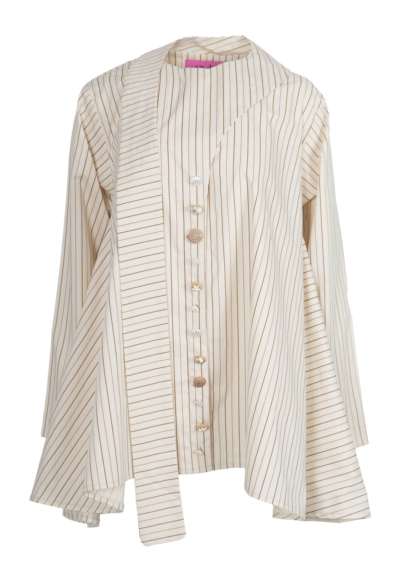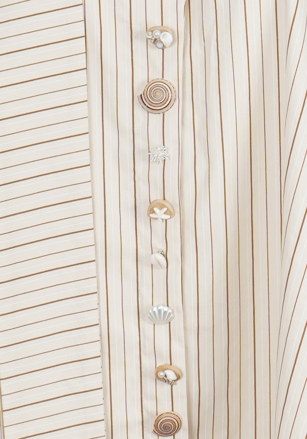 قميص من قماش القطن بأزره راقيه بأشكال متعدده، مغلق بالكامل من الأمام بأزره مخفيه