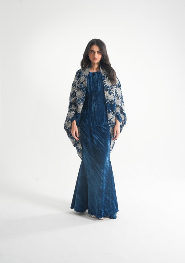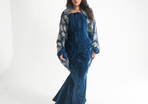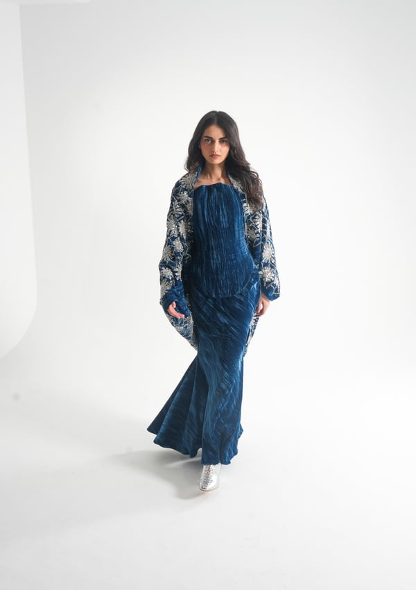 موديل رمضاني عباره عن ٣ قطع، كورسيه و تنوره من قماش المخمل و جاكيت مشكوك