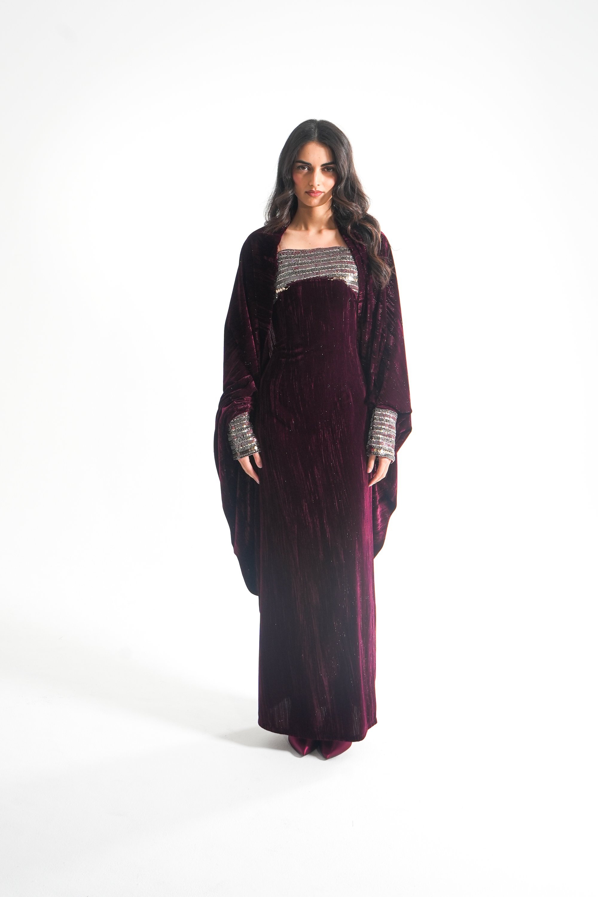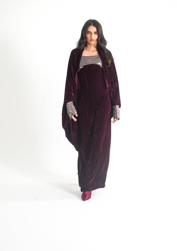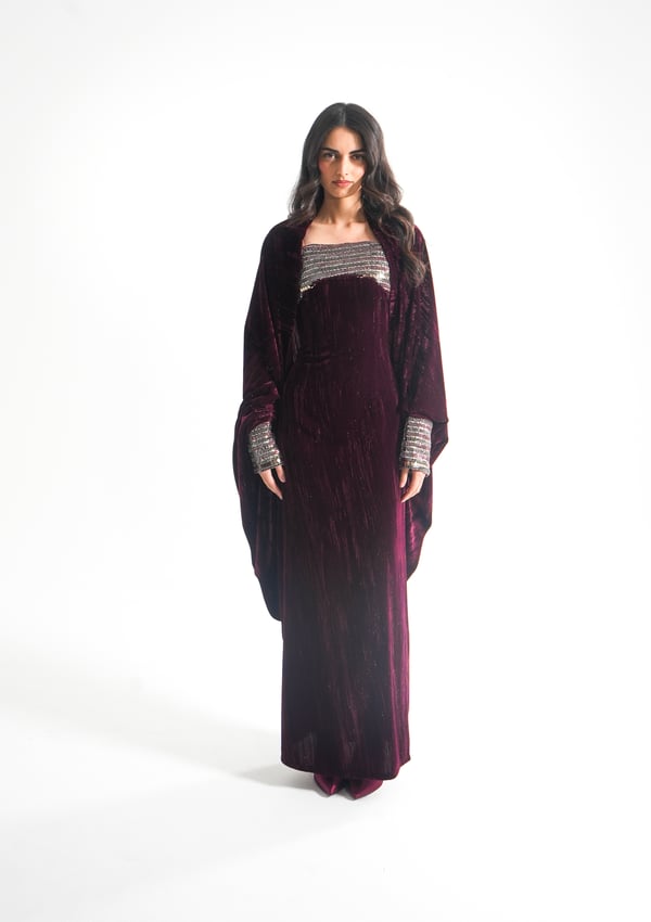 موديل رمضاني عباره فستان كوكتيل بدون أكمام بقصة صدر مشكوكه و  بحبل من الخلف للتخصير و جاكيت بأكمام مشكوكه