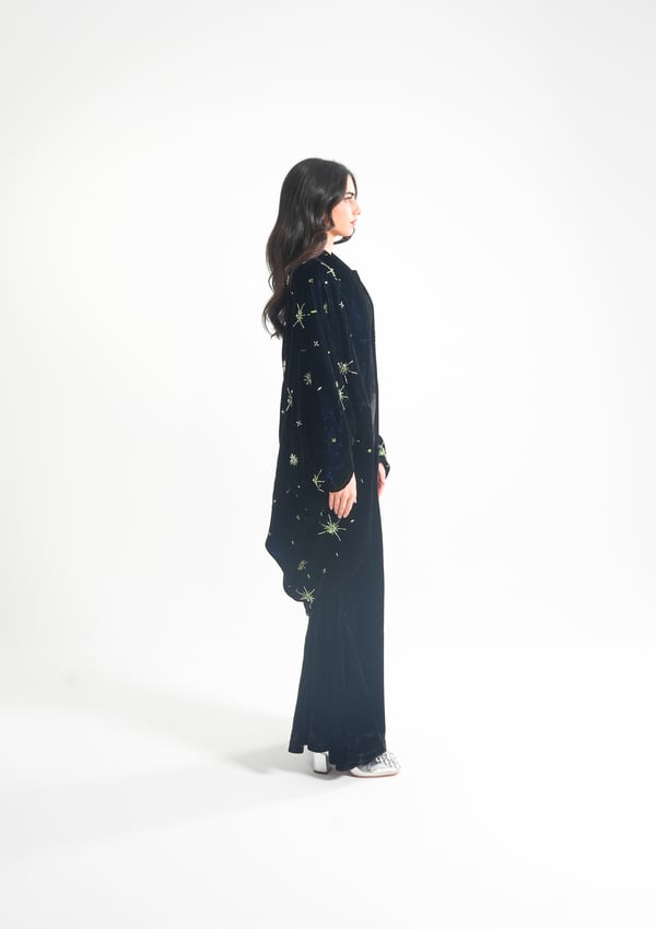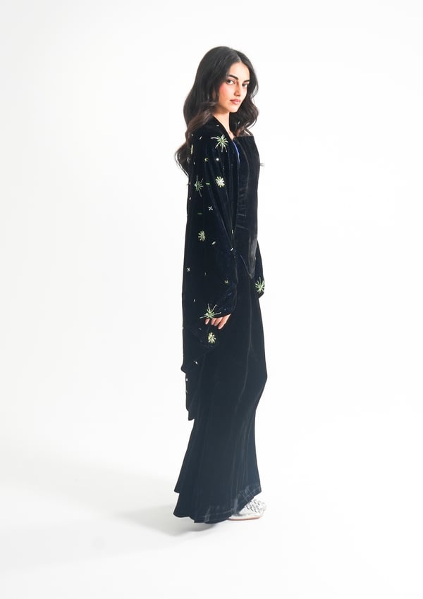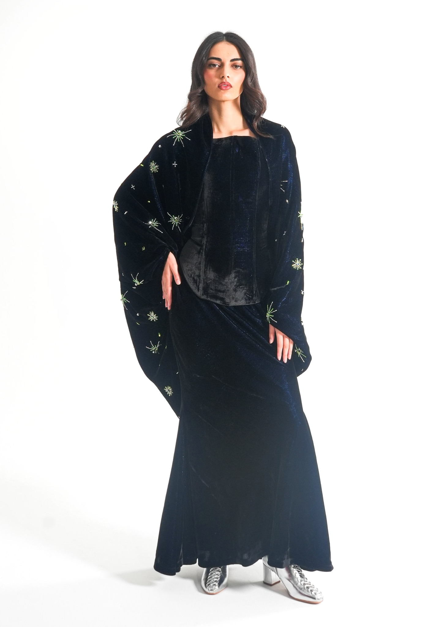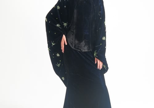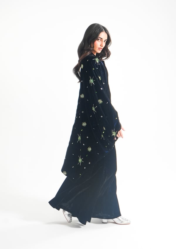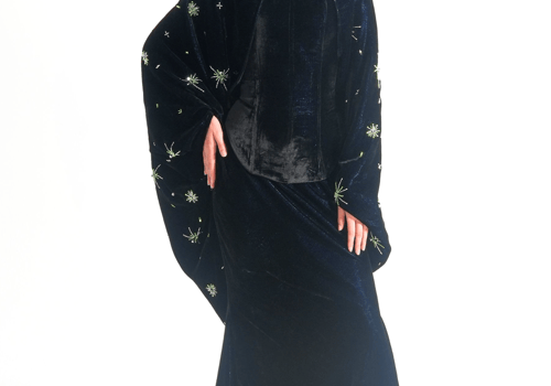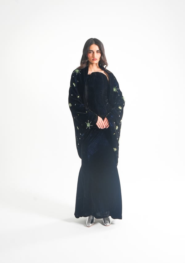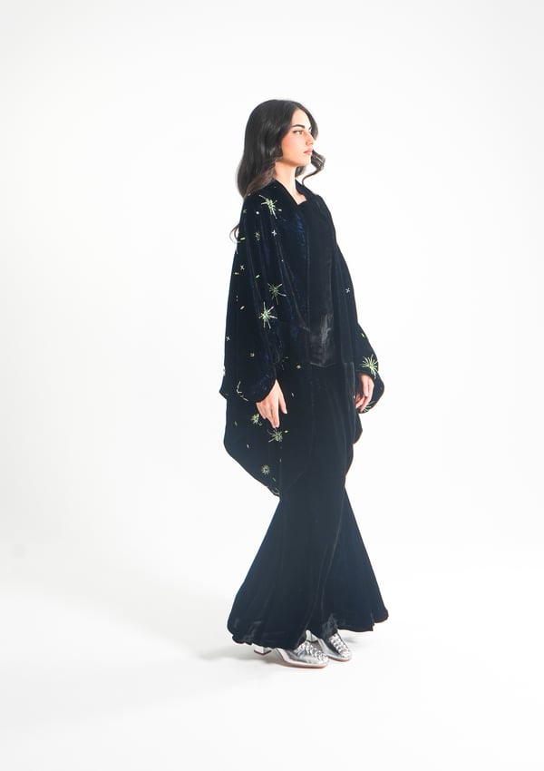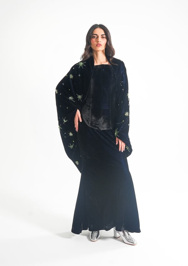 موديل رمضاني عباره عن ٣ قطع، كورسيه و تنوره من قماش المخمل و جاكيت مشكوك
