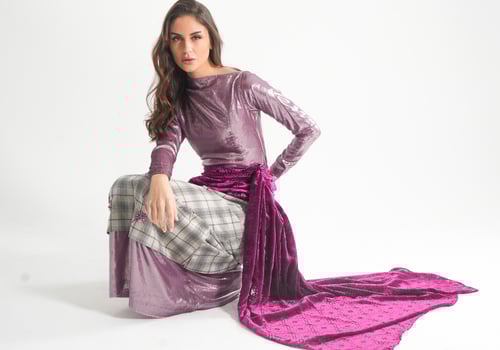 موديل رمضاني عباره بلوزه بقصه مميزه من قماش المخمل الزري و تنوره مشكوكه شك يدوي بتفاصيل جميله