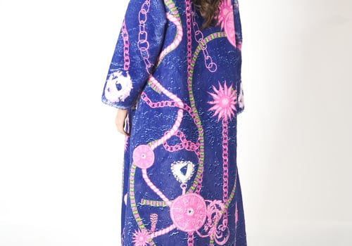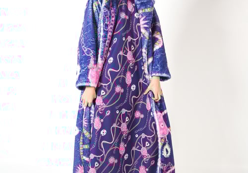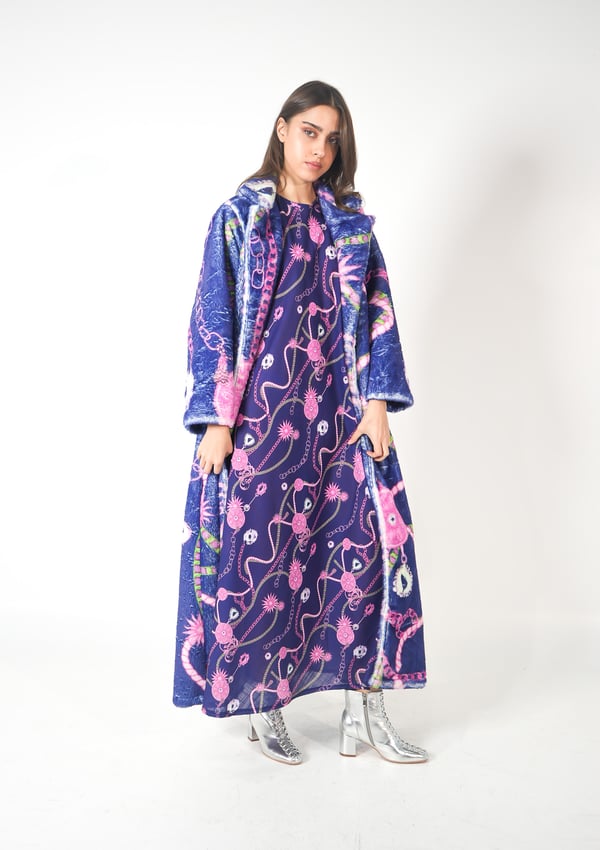 موديل رمضاني عباره عن قطعتين: جاكيت من الصوف و فستان بقصه واسعه من اللنن يتوفر بقياس نسائي و أطفال
