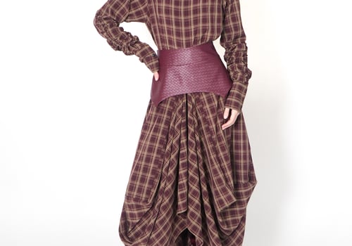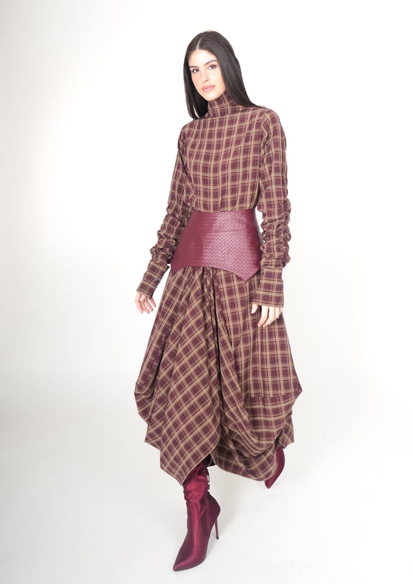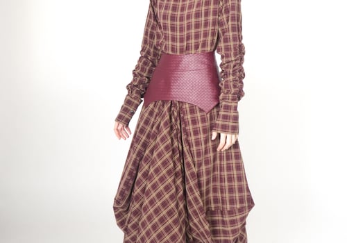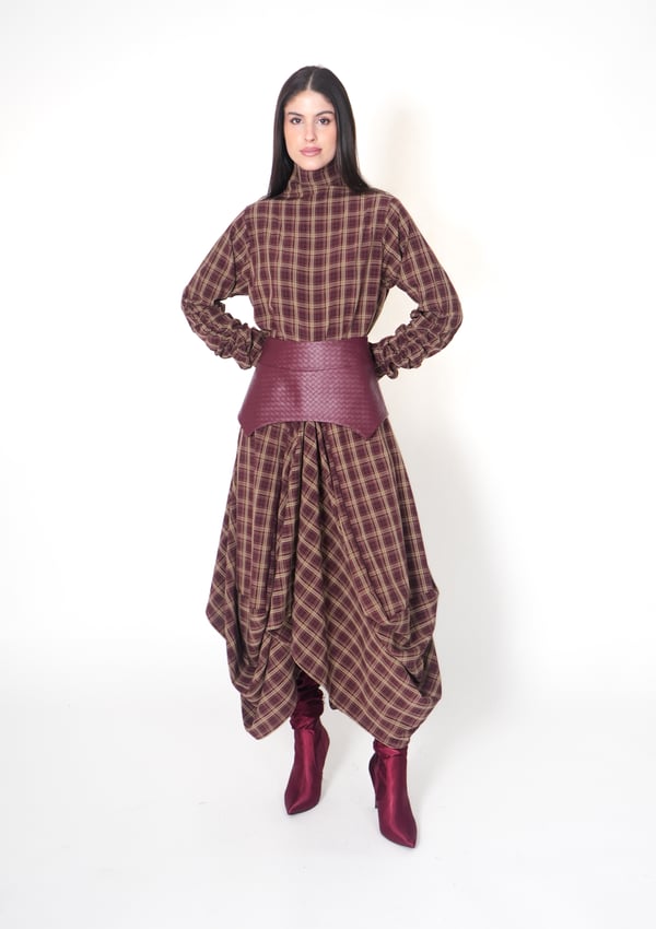 موديل رمضاني عباره فستان من قماش التنسل مع حزام منفصل من الجلد