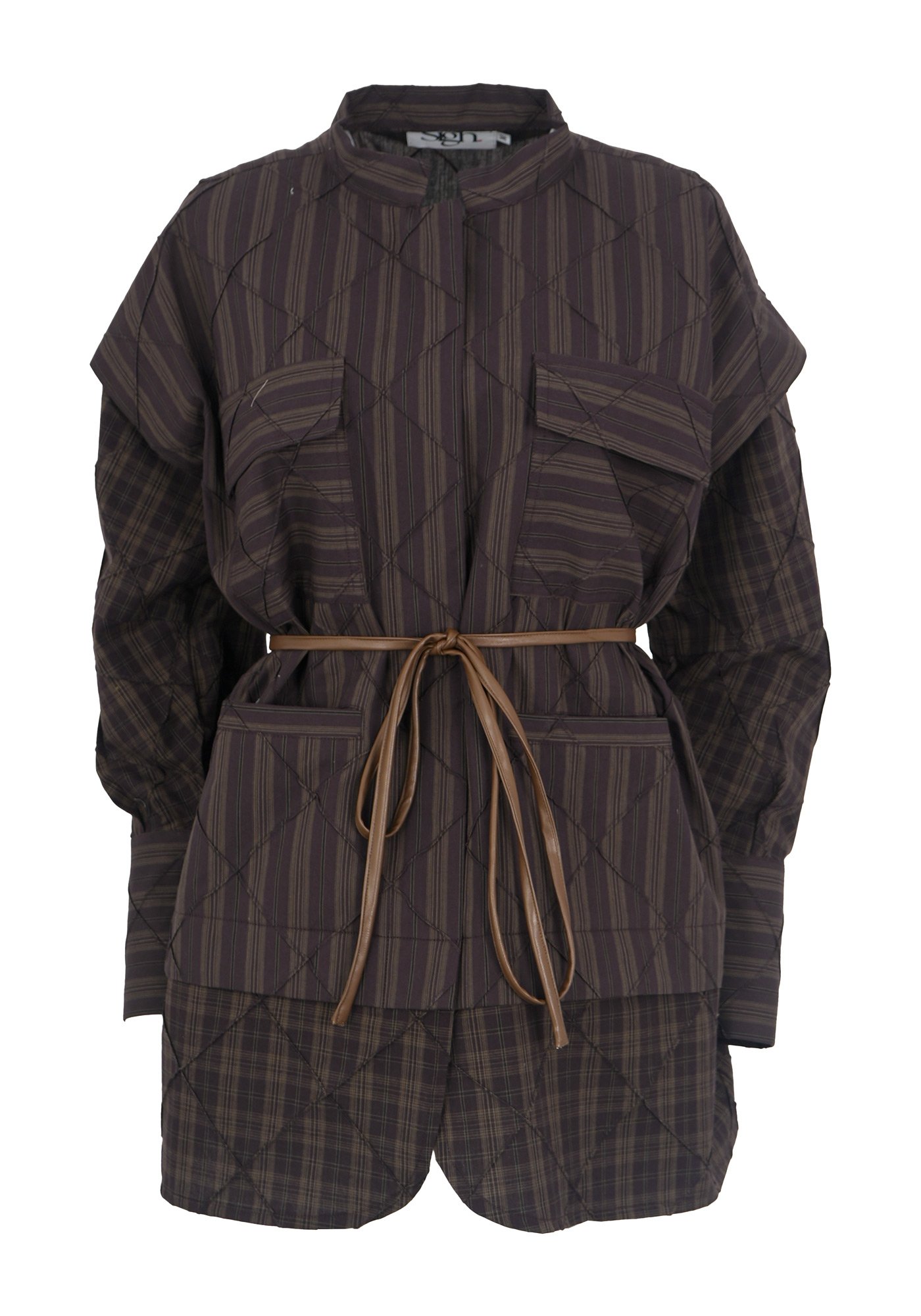 قميص من القطن غير مبطن بعدة قصات مع حزام من الجلد