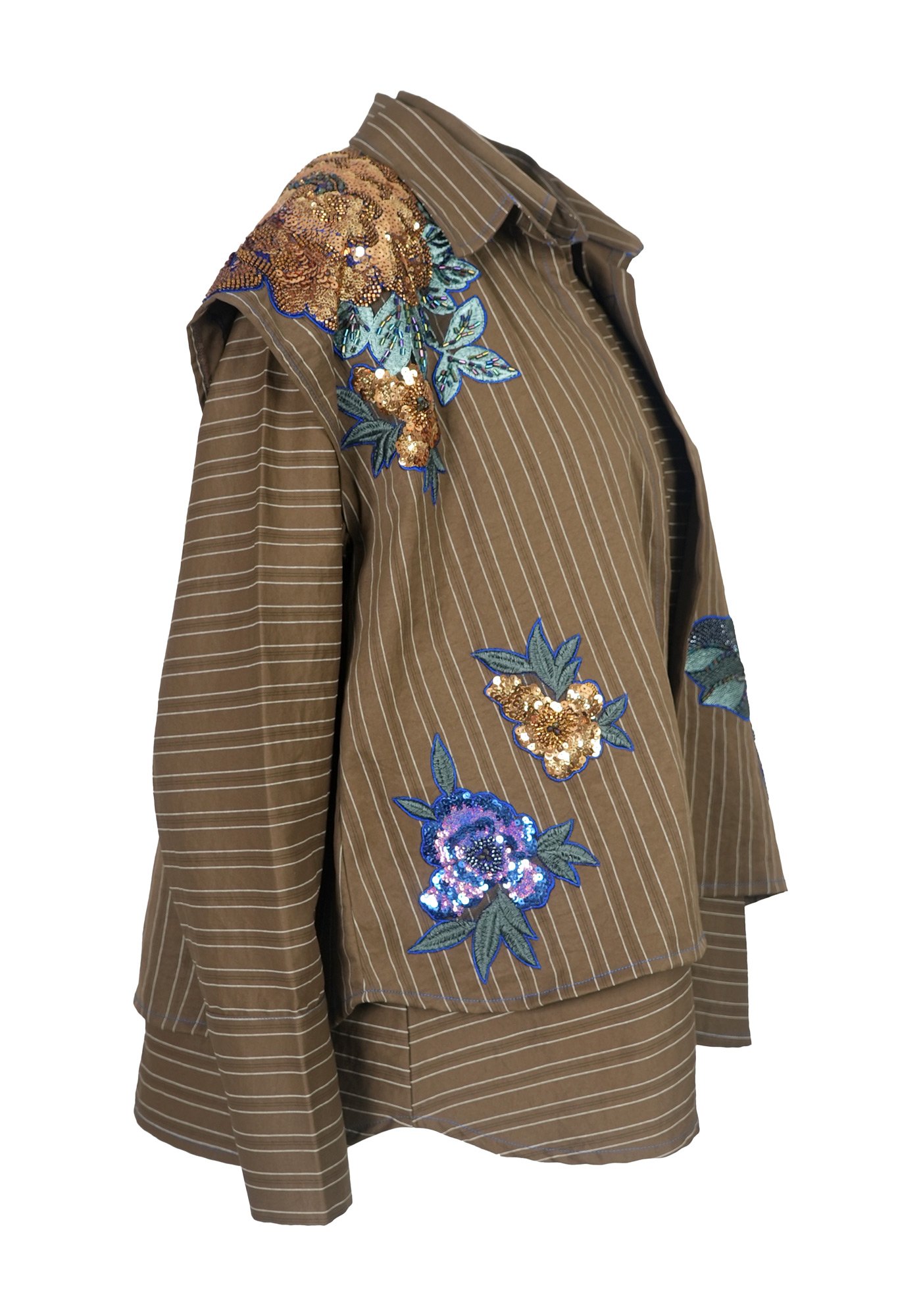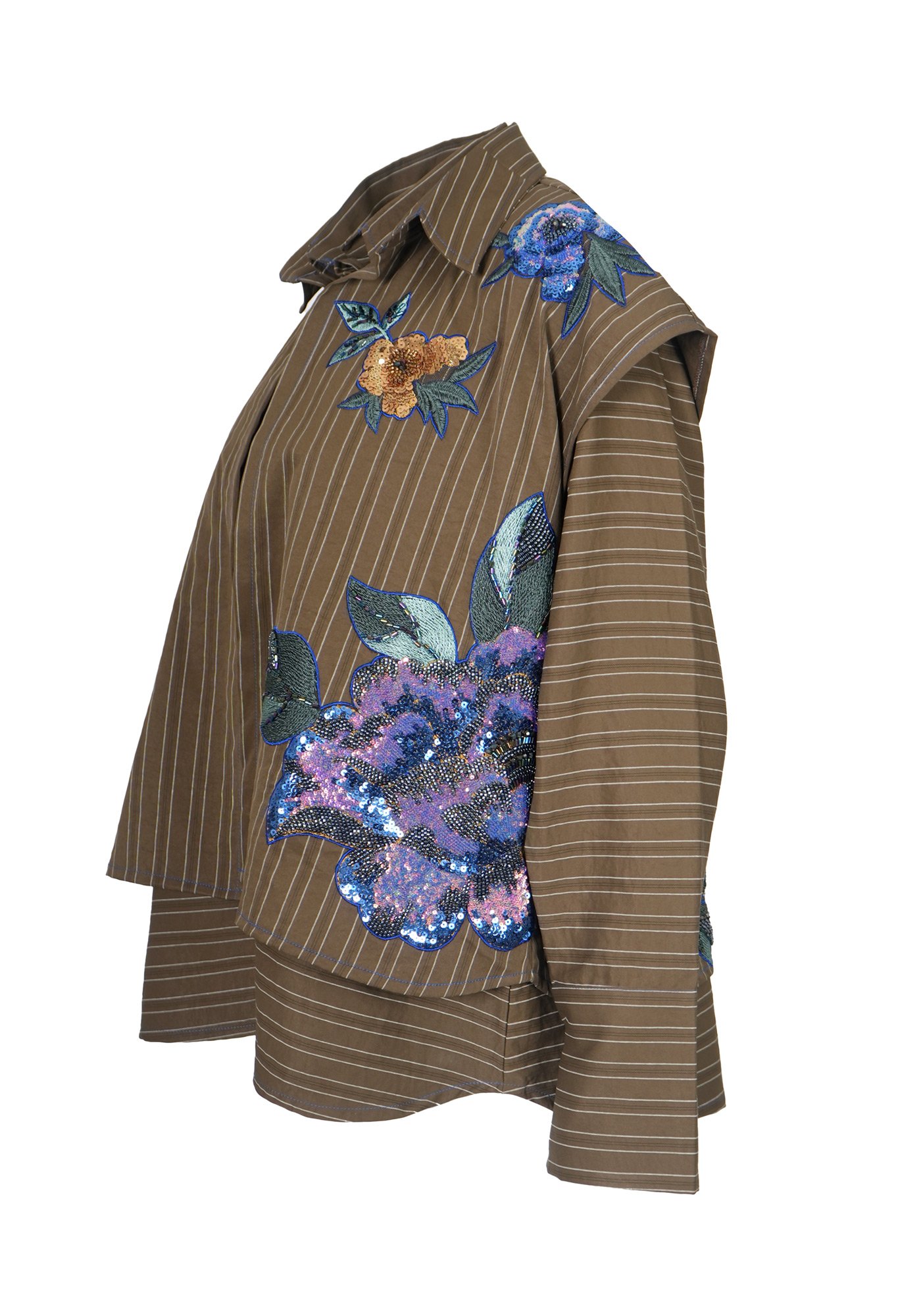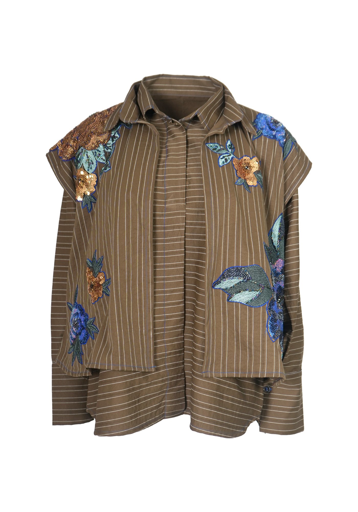 قميص من قماش القطن البارد مع فست مشكوك بشك ثقيل