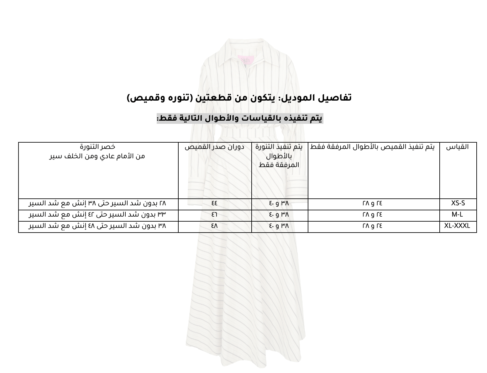 القياسات الخاصه غير متاحه فقط المتاح التعديل على الطول من خلال الاختيار الأطوال المتاحه