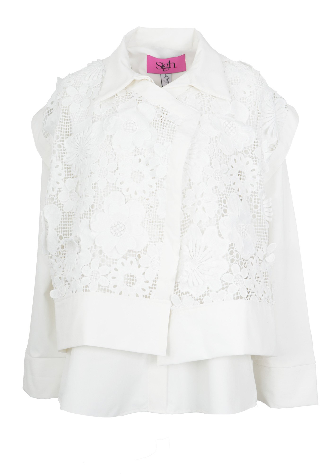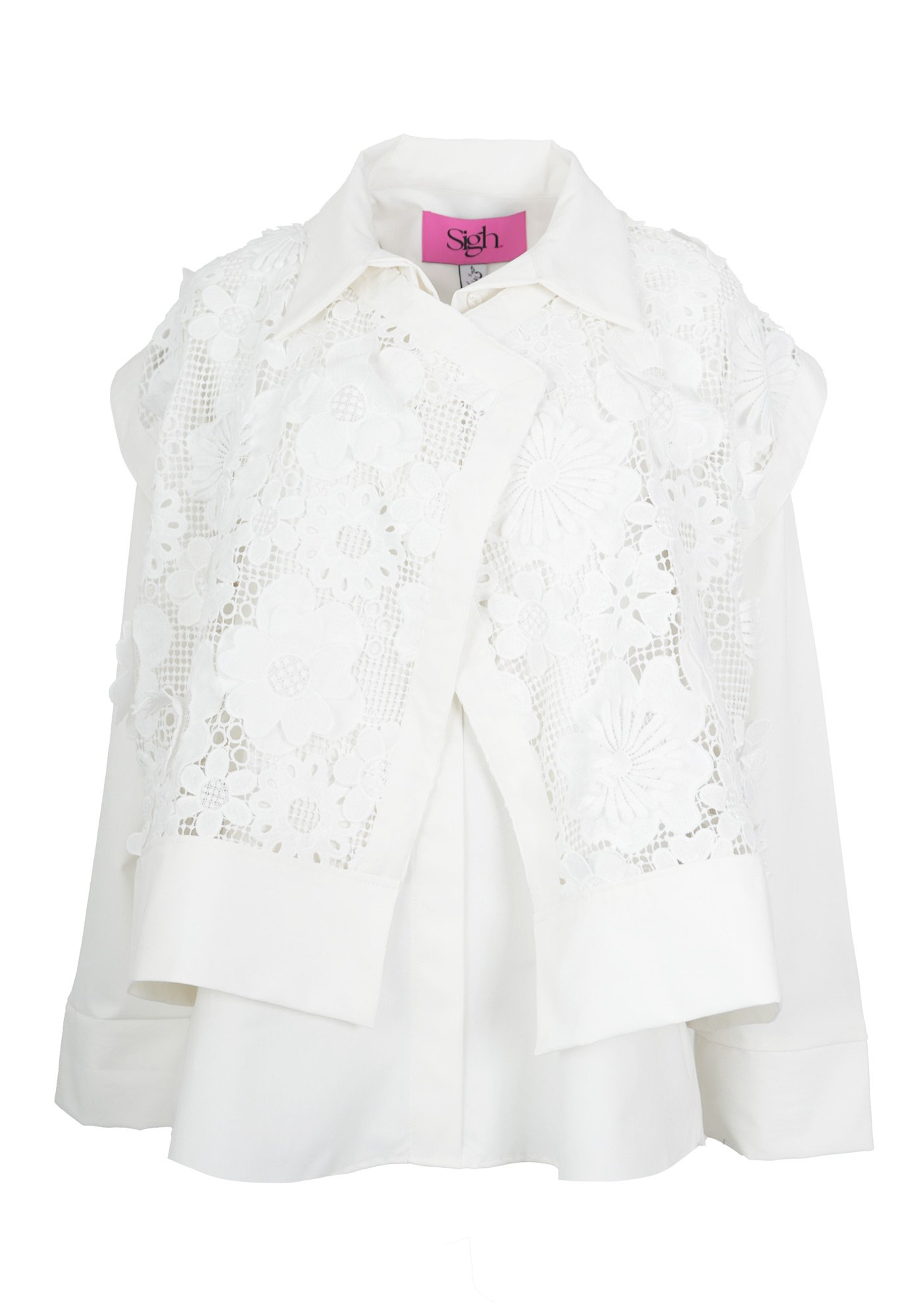 قميص من القطن الماكسمارا المطفي غير مبطن مع جاكيت حفر منفصل بقماش راقي من الورود البارزه